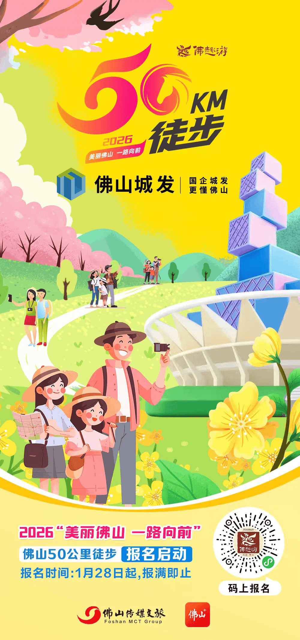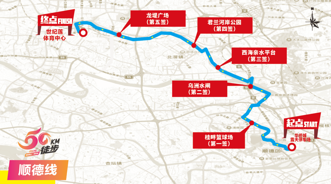 活动当天不接受现场报名,需要提前报名。2026佛山50公里徒步五条线路名额分别南海、禅城、顺德各3万,高明、三水各1万,合共11万名额,名额报满即止,五条线分。问