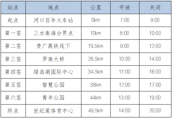 可以提前出发。各站点的服务时间请关注后续发布在“佛山50公里徒步”主题页的具体说明。