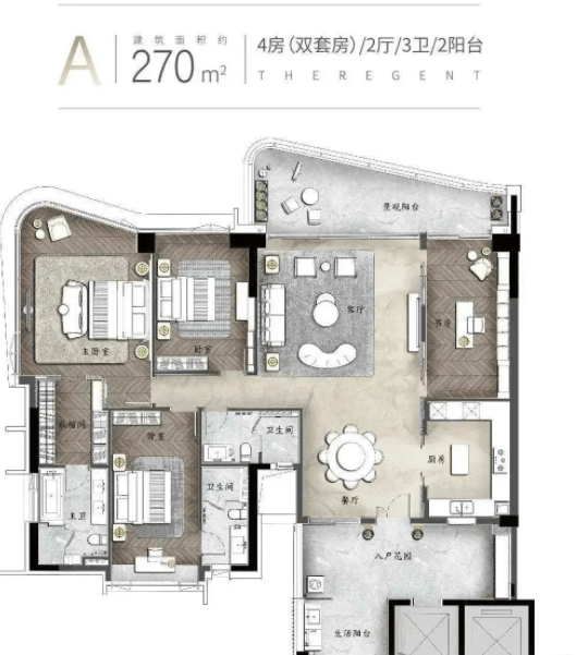 至于建面约 270㎡的江景大宅,更是将奢华与舒适推向了顶峰。9 米超大邮轮式阳台,让人仿佛置身于一艘豪华游轮之上,随时可以俯瞰江景。42㎡阔绰主卧,配备 270°环幕江景,专梯专户搭配墅级空中双花园,私密性和尊贵感无与伦比。总价 1350 万起,这是给成功人士的终极礼赞。