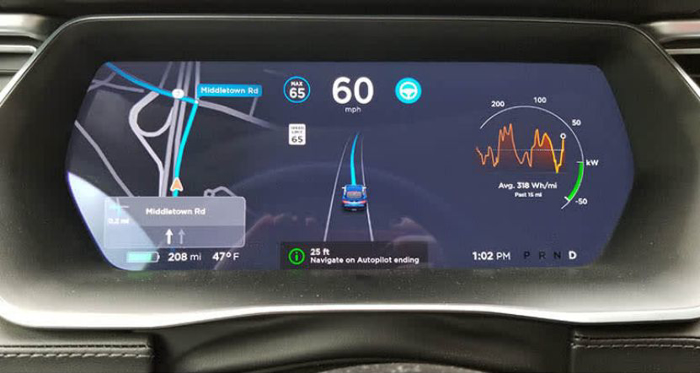 像大部分导航系统一样,NavonAP 会为驾驶员提供车道选择的建议,基于他是马上要到一个出口、交汇或者岔口。然而特斯拉这套系统向前又进了一步,那就是车辆会在驾驶员通过发出转向信号或 AP 拨杆确认后自动进入建议的车道。车辆同时必须要确认这个变道的行为是安全的。